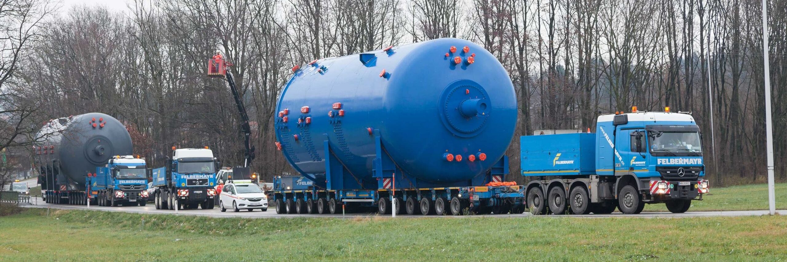 Premiza necesară pentru punerea în aplicare a astfel de transporturi de mașini sunt angajații cu experiență și echipamentele tehnice cele mai moderne. Felbermayr este, prin urmare, în mod constant în contact cu producătorii de vehicule pentru a încorpora experiențele din practica de zi cu zi, în următoarele generații de echipamente moderne de înaltă performanță. La Felbermayr este disponibilă o varietate de mașini cu remorcă cu până la patru axe și cu putere de până la 800 CP. Pentru transport, sunt disponibile toate tipurile de remorci, semiremorci, punți pentru cazane și remorci cu platformă joasă, precum și aproximativ 300 de „linii grele pe osie“. Cu un autopropulsor (transportor cu autopropulsie modular – SPMT) stăpânim chiar și condiții geometrice dificile și pante abrupte cu Oversized Cargos.